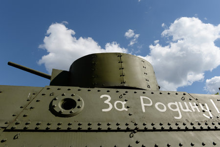 Soviet russian military old tank on blue sky