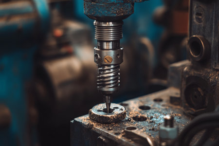 Focused cnc drill bit among complex machinery for high precision operations and craftsmanship