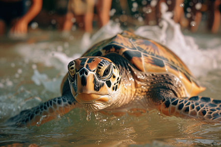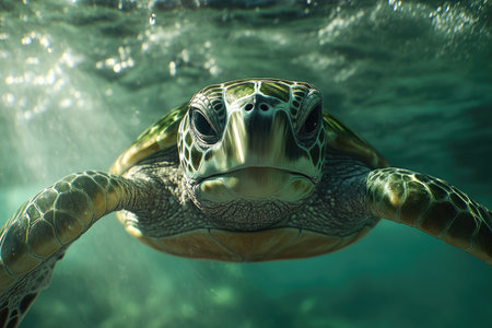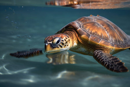 sea turtle swimming, with its flippers breaking the waters surface, created with generative ai