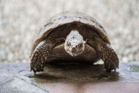 Closeup of cute big turtle in EDINBURGH BUTTERFLY and INSECT WORLD.Selected focus