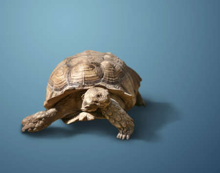 Tortoise on blue surface with ample space around it