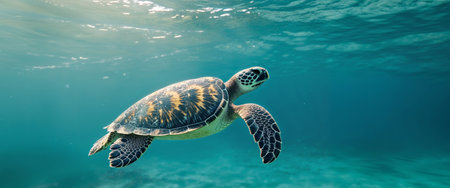 Graceful sea turtle swimming in clear ocean water under sunlight