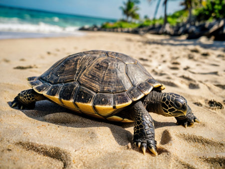 A friendly tortoise plodding along at its own pace AI generated