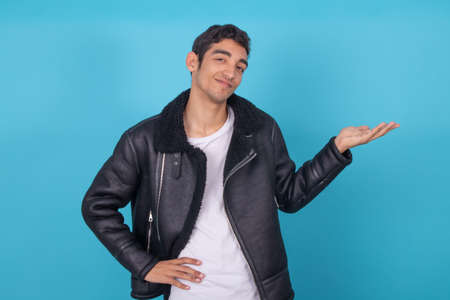 Portrait of a young man with a creative make-up on a blue background