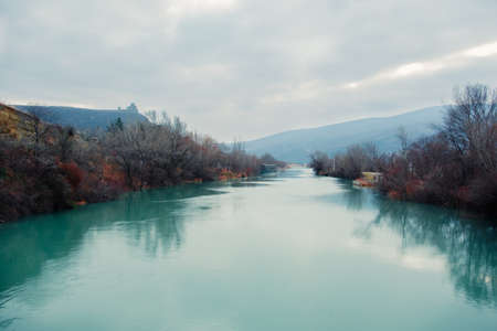 Mtkvari river in winter while walking to Jvary monastery near Mtskheta, Georgia