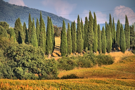 Cypress trees in a classical tuscan landscape - HDR