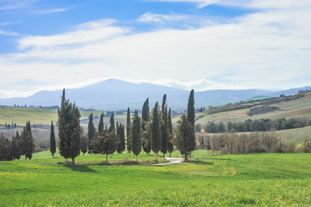 Aerial view of the Tuscany cypress landscape in springtime