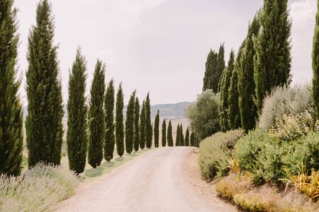 At San Quirico d'Orcia - Italy - On august 2020 - cypress row, better known as cipressini
