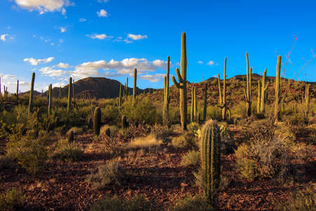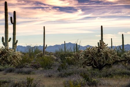 Organ Pipe Cactus National Monument, with chainfruit cholla and saguaros at sunset