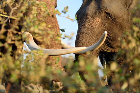 Close-up photo of tusks of an endangered African Elephant in Kruger National Park, South Africa