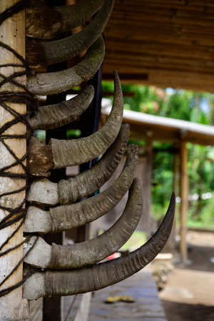 Buffalo Horns from Sacrifices Mounted as Decoration in Luba Traditional Village, Flores, Indonesia