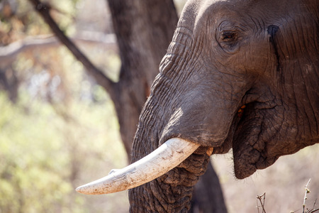 Close up of an Elephant tusk in the Kruger National Park, South Africa.