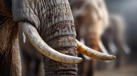 A stunning close-up image showcasing the intricate textures and details of an elephant's skin and tusks, embodying the beauty of wildlife.