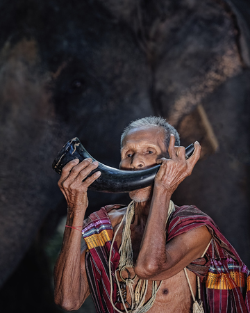 The tusks and trunk of the Asian elephant. Very close. Indonesia. Sumatra. An excellent illustration.