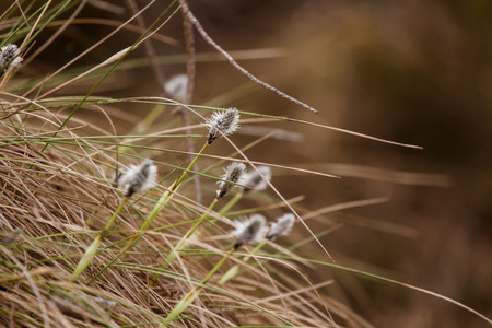Beautiful hare’s-tail cottongrass in a natural habitat in early spring.