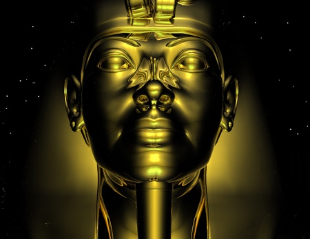 Portrait of the ancient Egyptian pharaoh with gold skin. 3d rendering
