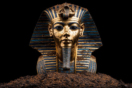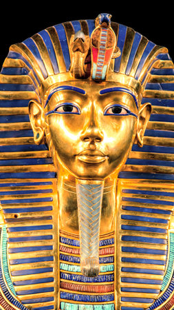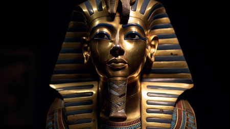 Ancient egyptian pharaoh golden mask close up with intricate detail.
