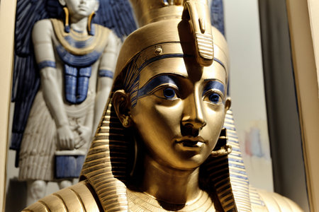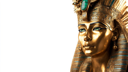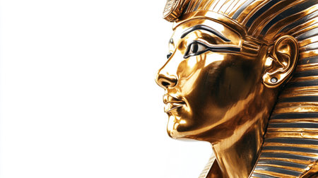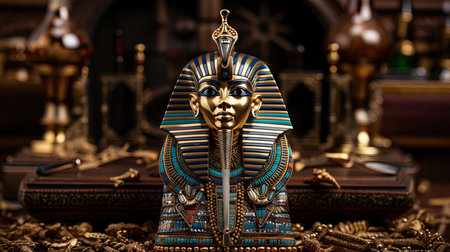 This stunning close-up image features an ancient Egyptian pharaoh bust, showcasing exceptional craftsmanship and intricate details, perfect for cultural and historical themes.