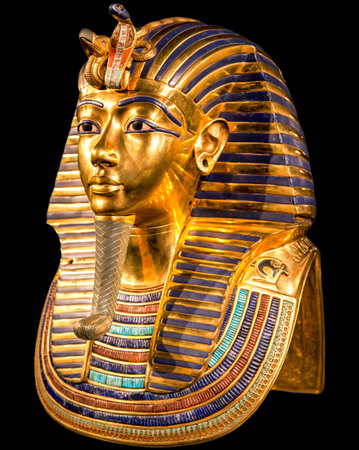 Egyptian sarcophagus of Pharaoh Tutankhamun isolated on black background