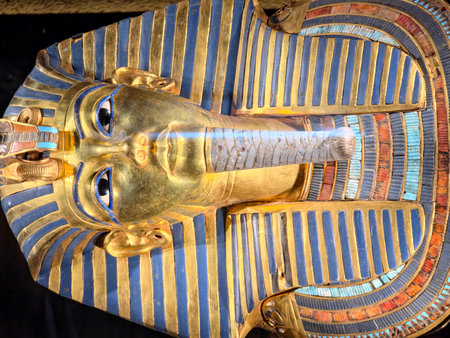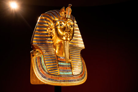 Golden mask of Tutankhamun on display, a masterpiece of ancient Egyptian art