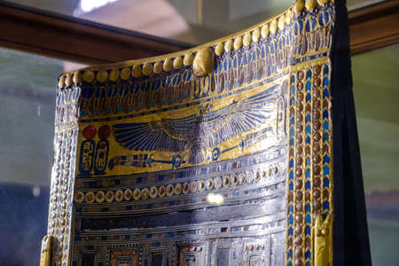 Cairo / Egypt - May 25th 2019: Golden Throne of Pharaoh Tutankhamun displayed in the Museum of Egyptian Antiquities (Egyptian Museum) in Cairo, capital of Egypt