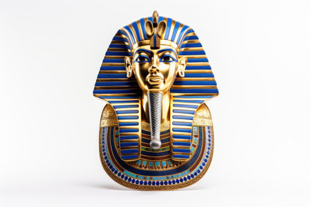 Golden mask of tutankhamun pharaoh, ancient egyptian artifact, isolated on white background