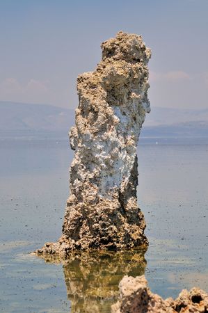 The Mono Lake, a soda lake is particularly alkaline and saline. On the shore and under water, tufa formations in bizarre shapes can be found.