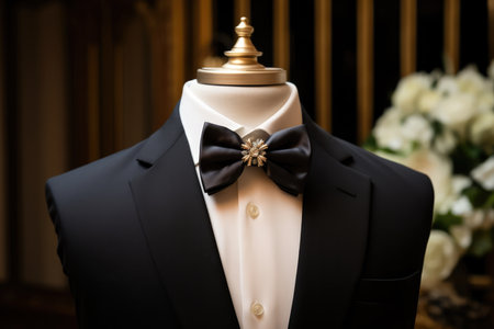 Tuxedo with bow tie on mannequin on black background