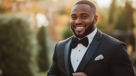 Portrait of a smiling african american man in tuxedo