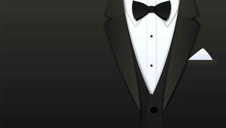 Close up of classic formal male tuxedo and bow tie with copy space, Paper art cut and craft style background, Vector illustration