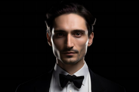 Portrait of handsome young man in tuxedo on dark background