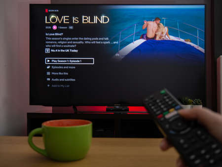 UK, March 2020: TV Television Love is Blind Netflix original series on screen