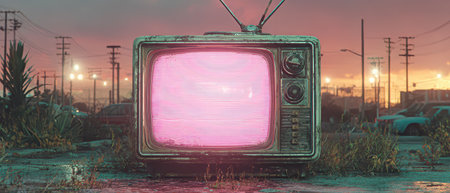Artistic depiction of a vintage analog television paired with a timeless lamp on a colorful, creative backdrop. The nostalgic aesthetic combines retro charm with bold, vibrant visual elements.