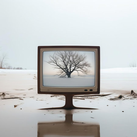 Old television static screen colorful stripes retro style water reflection surreal moody night vintage technology