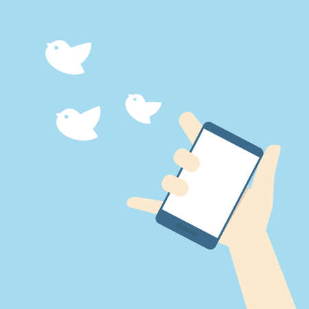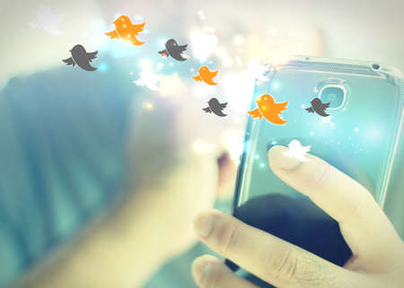 Social media birds escaping from smartphone screen