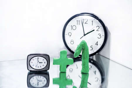 Timing and thinking idea with paper crumpled ball and white clock. business performance
