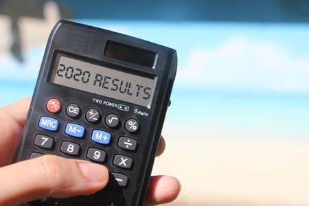 2020 drawn on the sand beach, new year concept. bye 2020 text is written by hand on the beach sand