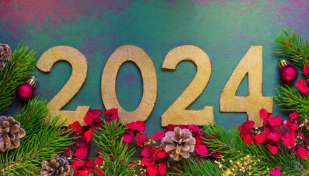 Christmas decorations in the home designed to celebrate the new year, with the inclusion of the numbers 2024