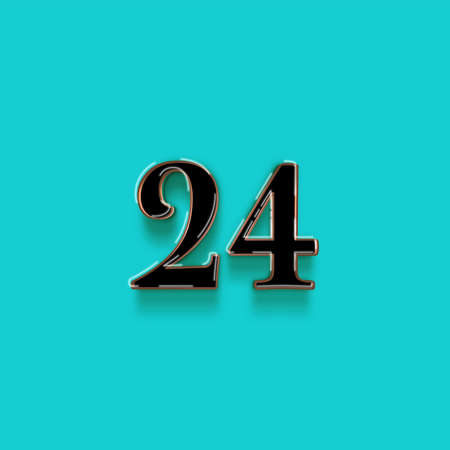 Metal number 24 with shadow on blue background, 3d rendering. Computer digital drawing.