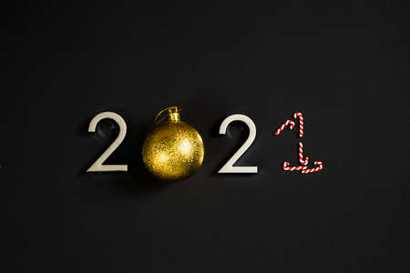 numbers 2021 on a black background, new year and christmas decorations.