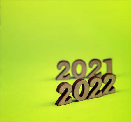 Banner 2022. Numerals 2022 on green background. Wooden digits 2022.