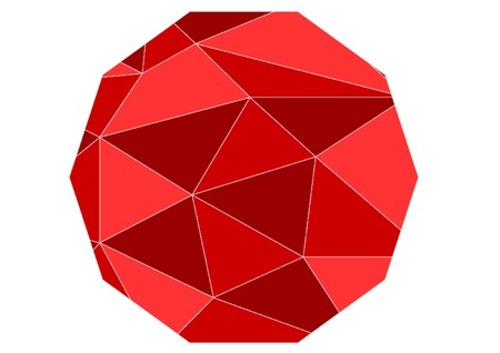 A close-up view of a geometric glass sculpture with triangular facets