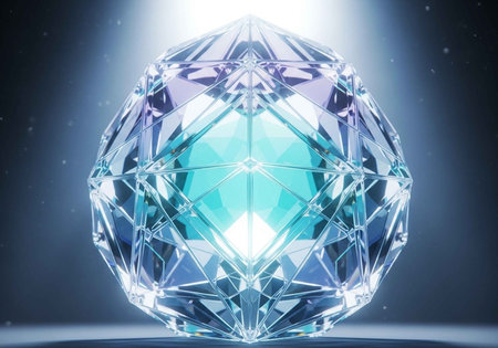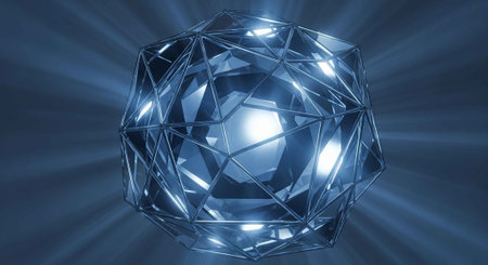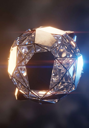 A stunning crystal ball with a geometric structure and radiant light