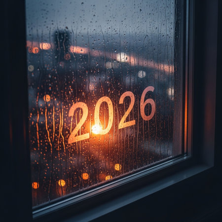 Glittering numbers representing 2026 hang on a festive Christmas tree surrounded by shimmering ornaments and warm lights capturing holiday cheer.