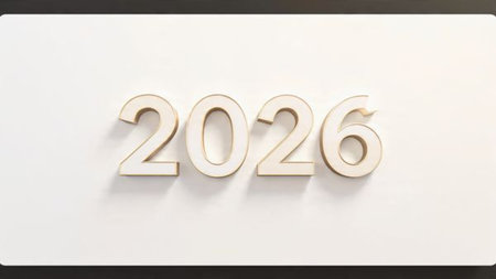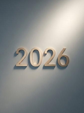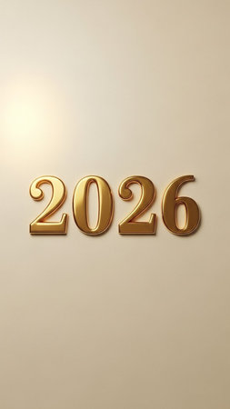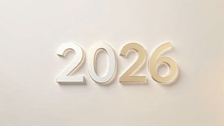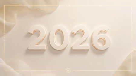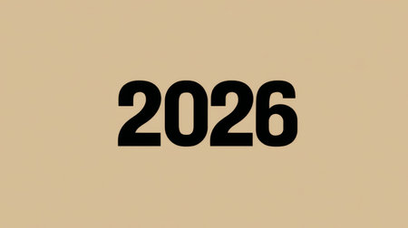 Year 2026 presented in bold black digits on a simple beige background creating a modern and minimalist feel