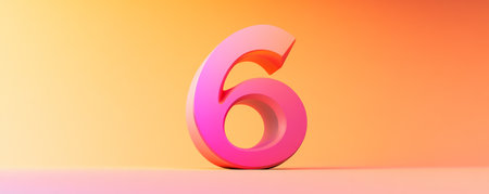 Pink 3d number six on gradient background, abstract concept