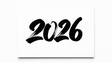 The year 2026 in black calligraphy brush strokes on a white card Clear details and vibrant colors...
