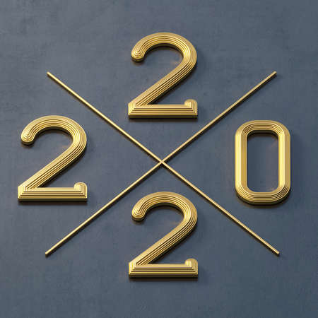 Happy New Year 2020. Creative Collage of numbers two and zero made up the year 2020. Beautiful sparkling Golden number 2020 on black background for design
