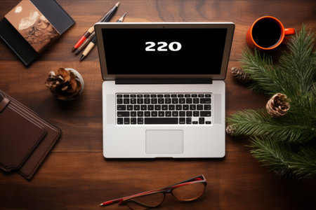 Christmas and New Year greeting card with composition festive decorations. Symbol from number 2020 on white background.