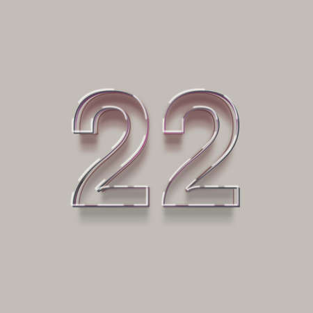 Red number 22. Metallic red color digit isolated on concrete background. 3D rendering.